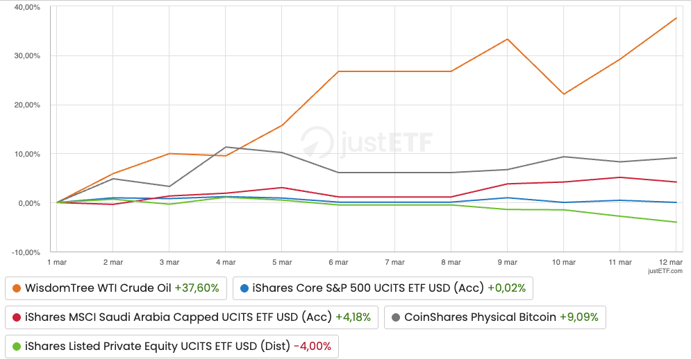 Variazioni in % al 12/03/26 in Euro. Sulla base del più grande ETF/ETC sull’indice.