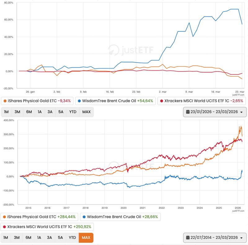 Variazioni in % al 25/03/26 in Euro. Sulla base del più grande ETF/ETC sull’indice.